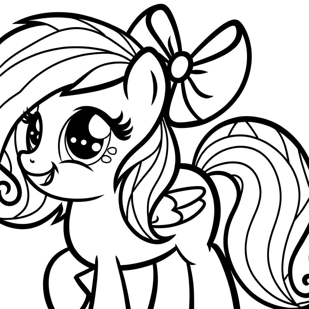 Ein süßes, lachendes Ponygesicht von vorne mit einer hübschen Schleife im Haar. Die simplen und symmetrischen Formen sind ideal für Malanfänger und Kleinkinder geeignet.