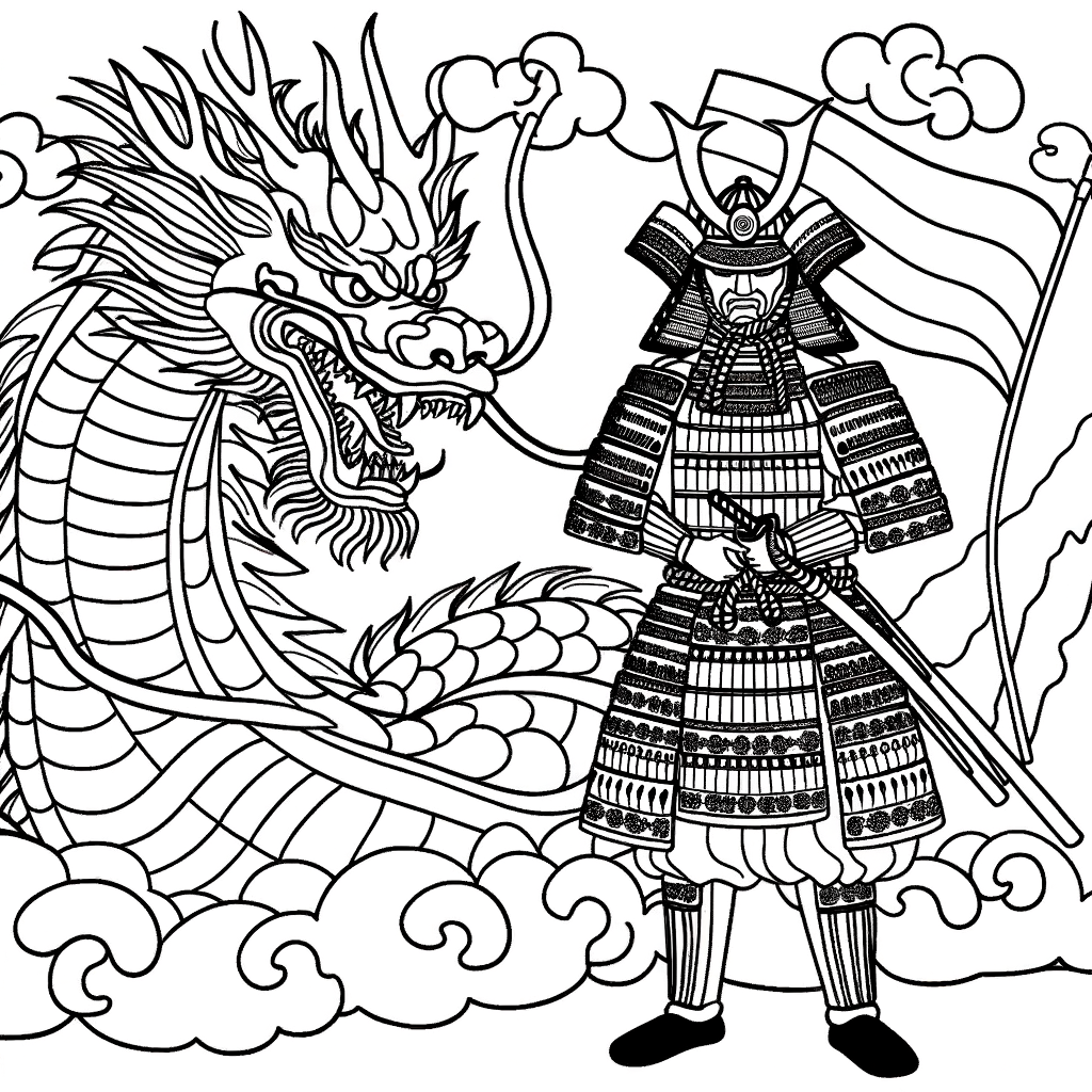 Erwecke diese epische Anime-Szene zum Leben! Ein detailreicher Samurai steht einem gewaltigen Drachen gegenüber. Perfekt für Fans von präzisen Rüstungen, Schuppenmustern und dynamischen Hintergründen.