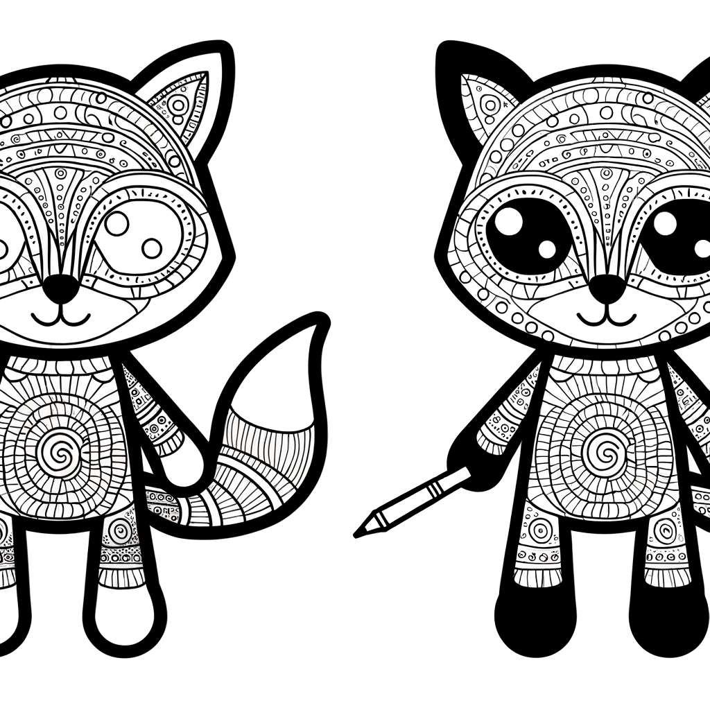 A cute standing fox wearing a chef's hat and holding a wooden spoon. Simple outlines and clear sections, perfect for kids.